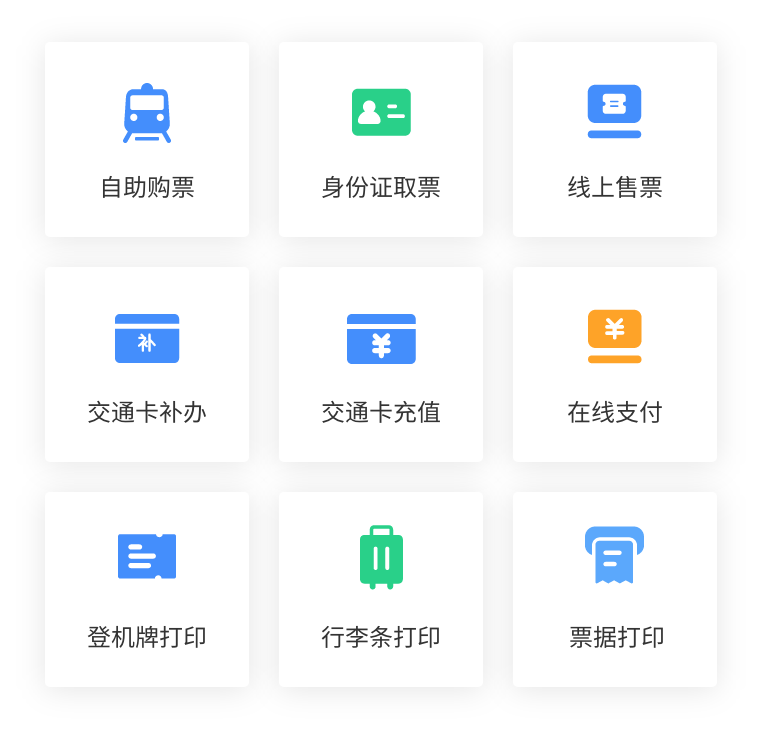 具备二代身份证识别、车票打印、银行卡支付、微信支付、支付宝支付、发卡等功能。