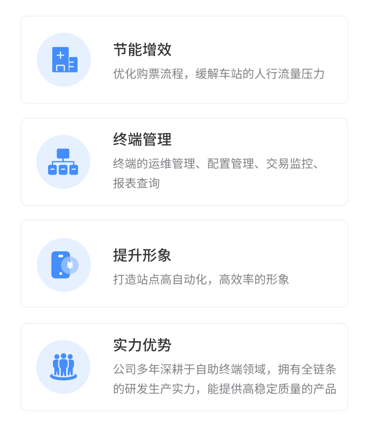 为车站提供自助终端购票软件定制化服务和微信服务号搭建服务,实现线上、线下相融合的全方位客运服务。
