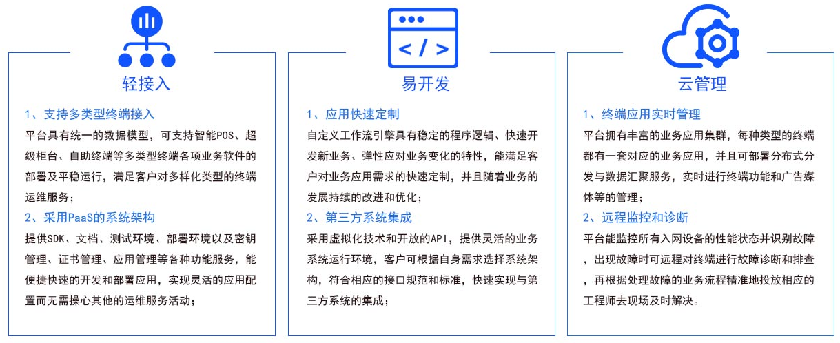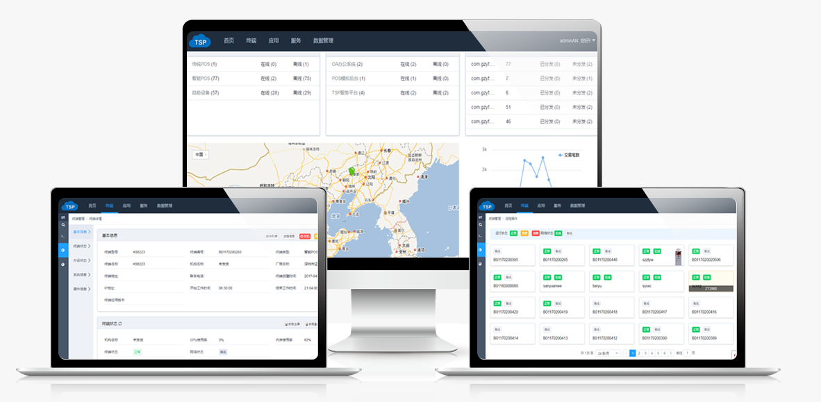 交易统计、终端地图、应用管理、智能监控……功能按需定制,操作一目了然